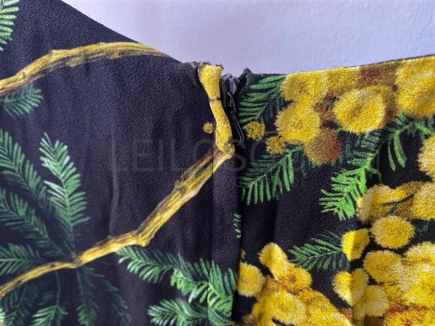 Vestido florido, preto, com flores verdes e amarelas, ideal para dias amenos de outono ou primavera.Estado: