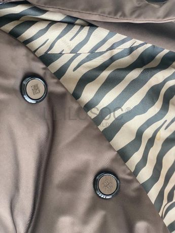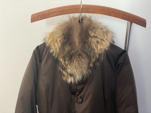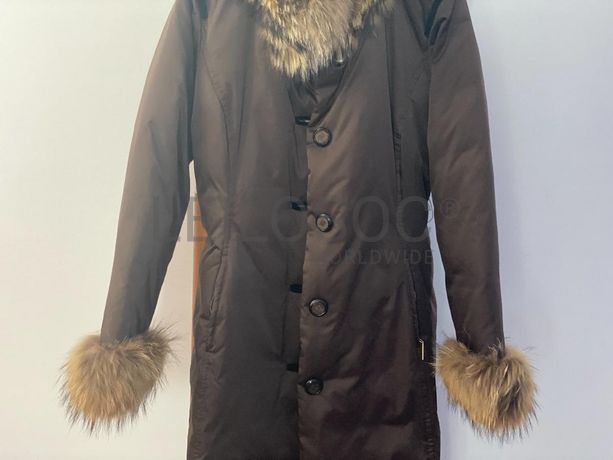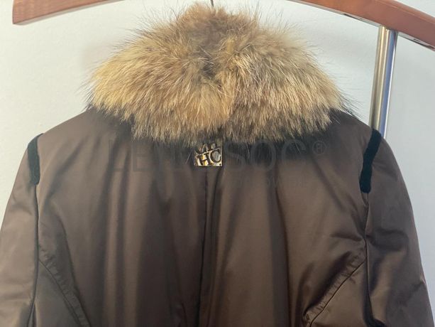 Casaco impermeável castanho com pelo, ideal para dias chuvosos.Estado: