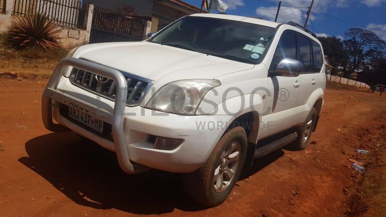 Viatura de marca Toyota, modelo Land cruiser Prado 2004, matrícula AHJ-437-MP, cilindrada 2985 m3, 4 cilindros, lotação de 7 lugares , com cerca de 284.117km