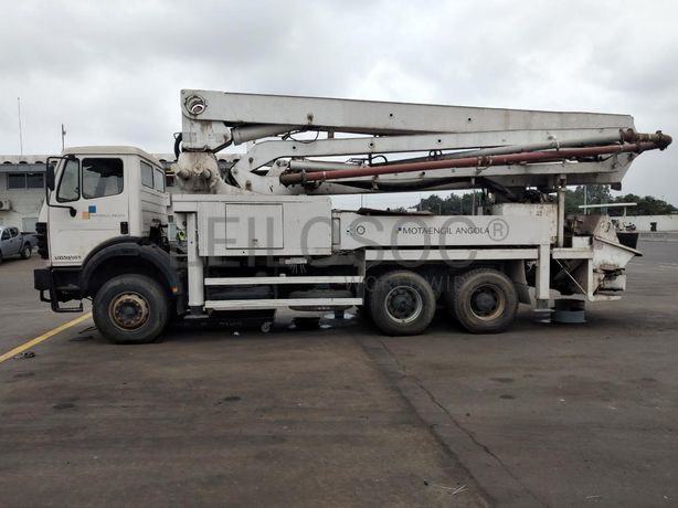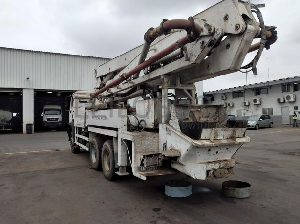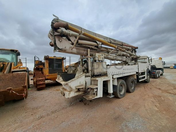 Autobomba para Betão 32 M Lança da marca MERCEDES-BENZ, modelo 2631-PUTZ 33/29 90M, número de série LDT-93-21 do ano 1997, com cerca de 1 443 897 Km/Horas.