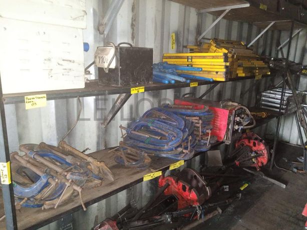 20 G-clamp, 8", 4 G-clamp, 6", 20 G-clamp, 12", 1 Welding Machine, 3 Pipe Curve, 1 Multi folder lader, 33 Torque Wrench, 100 nível, 7 Tie force, 1 Transformer, 220V, 3kva, 3 Power Transformer, 13 Hot Boxe, 4 Blow torch hose, 1 picareta, 6 Ridgid stard