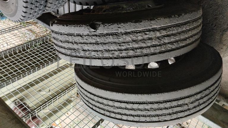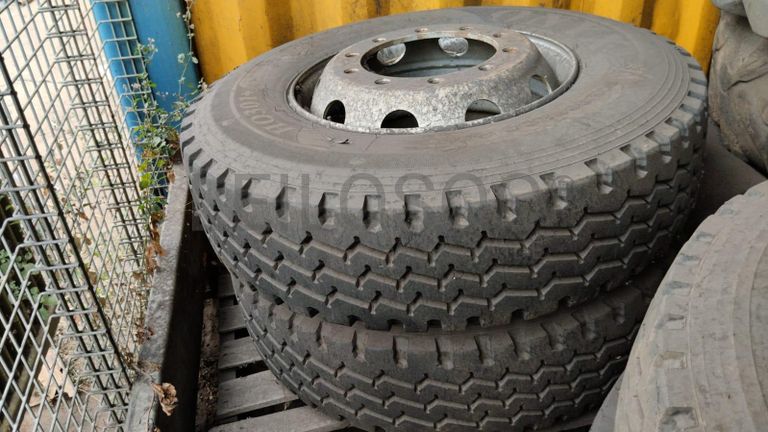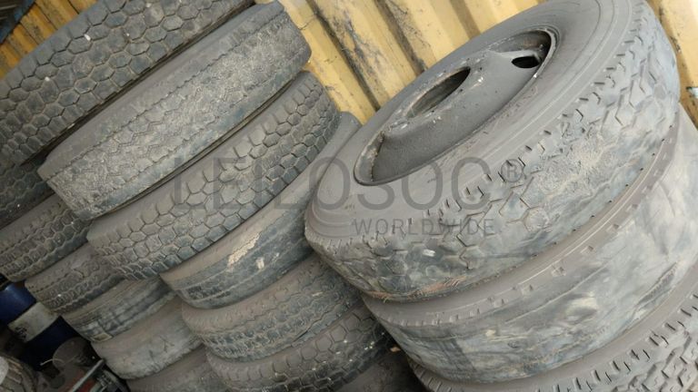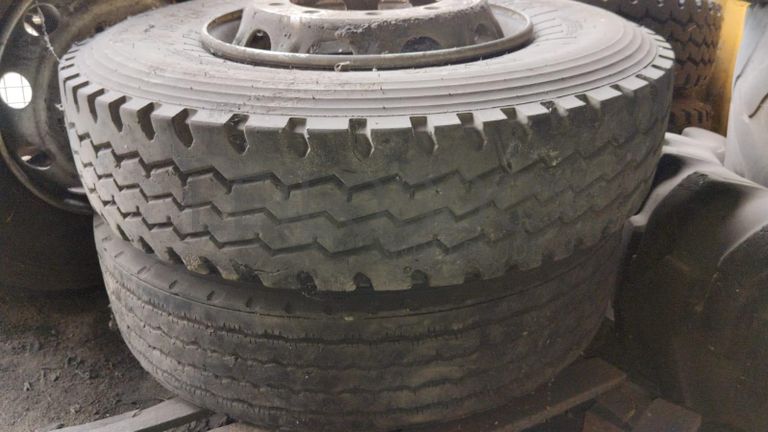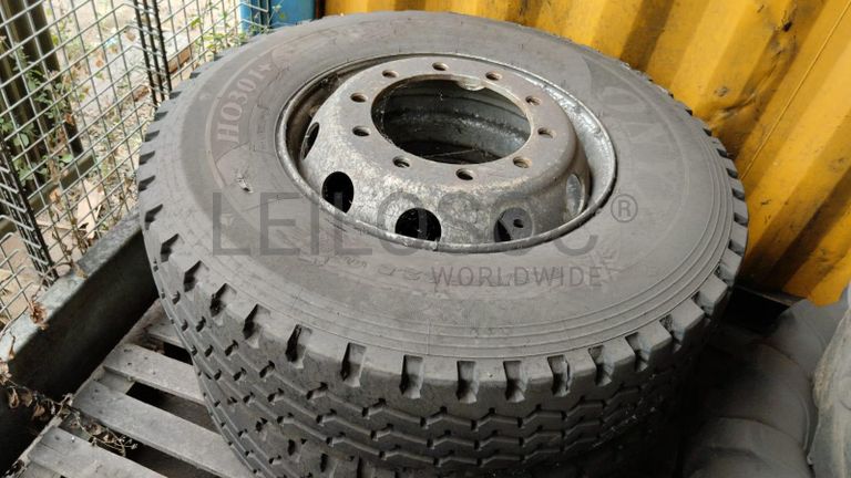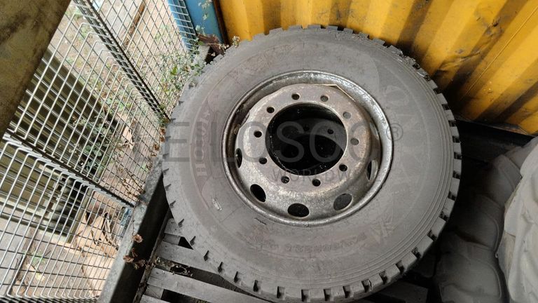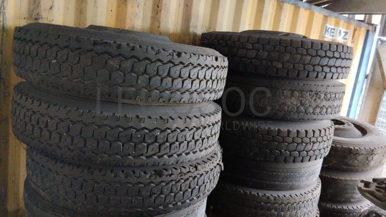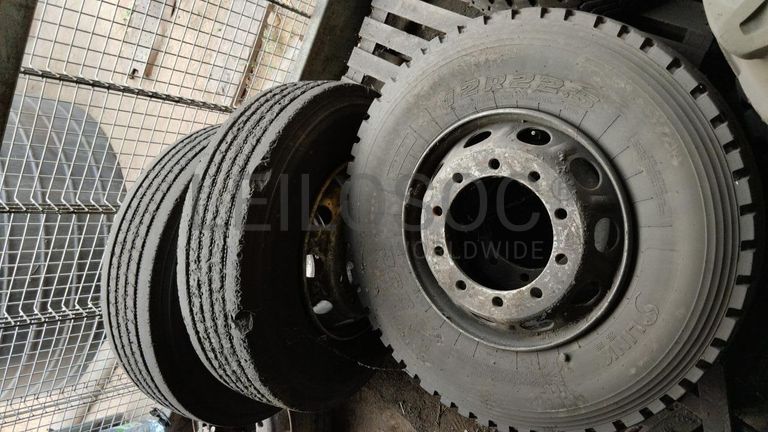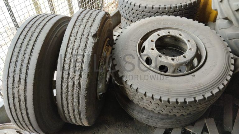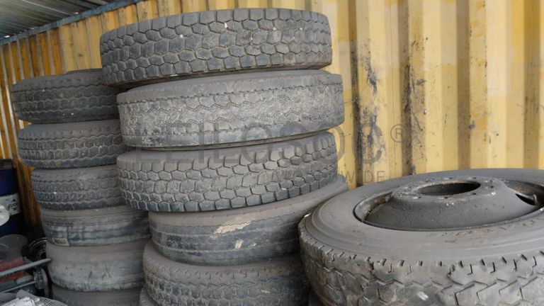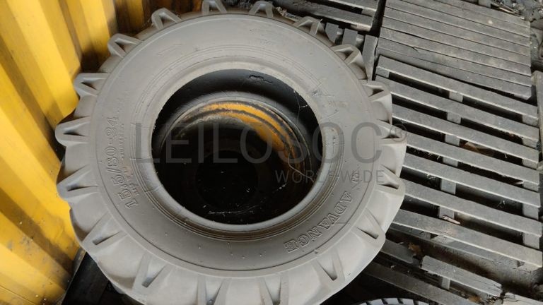 4 Pneus de veículo pesado 12R22.5 896 "Link". + 2 Pneus de veículo pesado 315/80R22.5 H0301+ "ONYX". + 2 Pneus de Trator 15.5/80-24 12PR "ADVANCE", 1 Pneu de Empilhadeira 15.5/80-24 N.H.S 4L-R1 "TRACTION MASTER". + 4 Pneus de plataforma elevatória 15-19.5 N.H.S "Wide-Wal" e"Galaxy". + 20 Pneus de veículo pesado 11R24.5 DRV-09 Freightliner "ATLAS TIRE". + 2 Pneus de veículo ligeiro SC328 "Radial Goodride", 1 Pneus de veículo ligeiro 195//75 R16C, 1 Pneu de veículo ligeiro 7.50-16 T-49, 1 Pneu de veículo ligeiro LT245/75R16. Usados. + 3 Pneus de Trator 20.8R38 Radial-850 "AGRIBIB", 1 Pneu de veículo pesado 16-00R25 445/95R25 A2235 "HENAN".