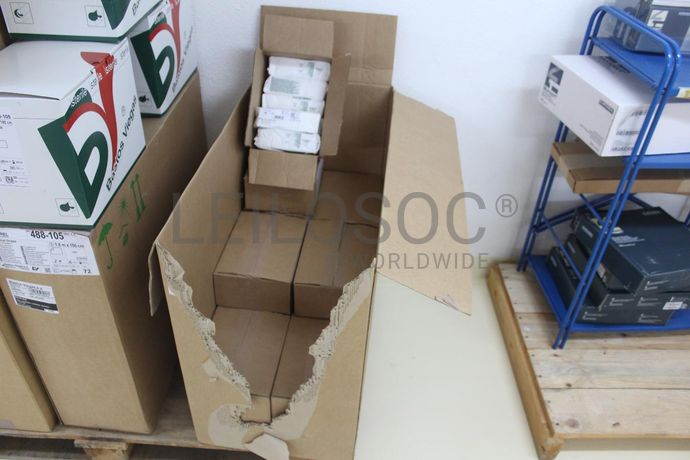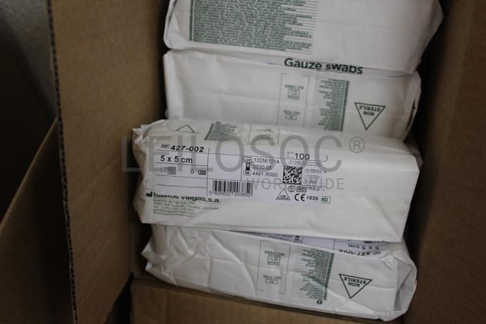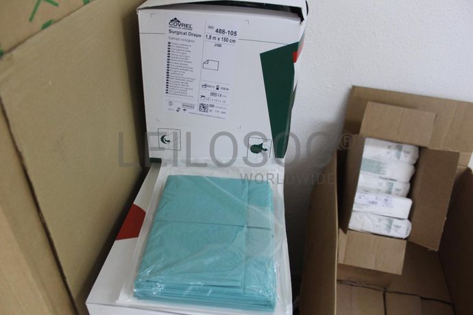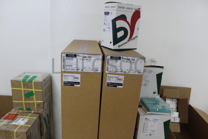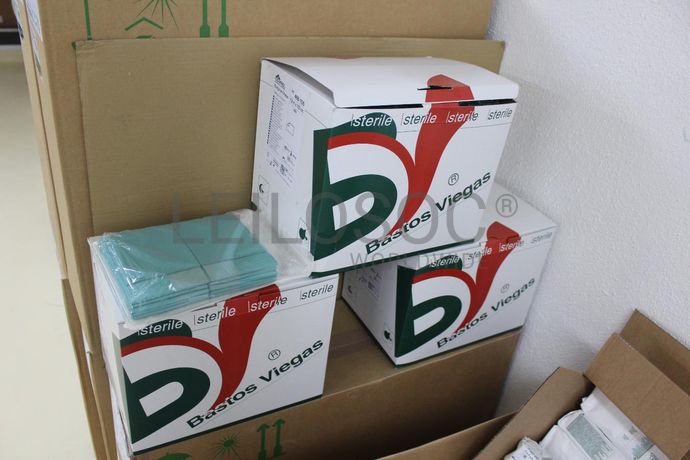Cerca de 177 unidades de compressas gazes 5x5, 9 unidades de campo operatório 150X180CM, 41 unidades de campo operatório 50X50CM, rolos de manga mista de 5cm, 10cm e 15cm, 5 caixas de proteção para pés e 2 batas descartáveis.