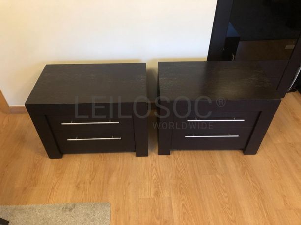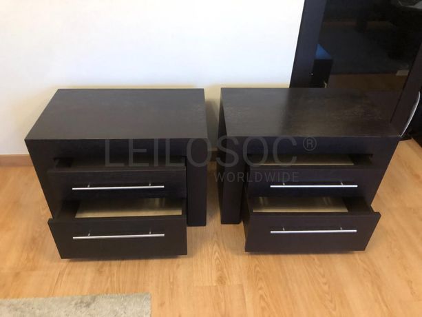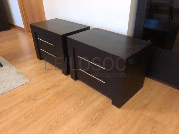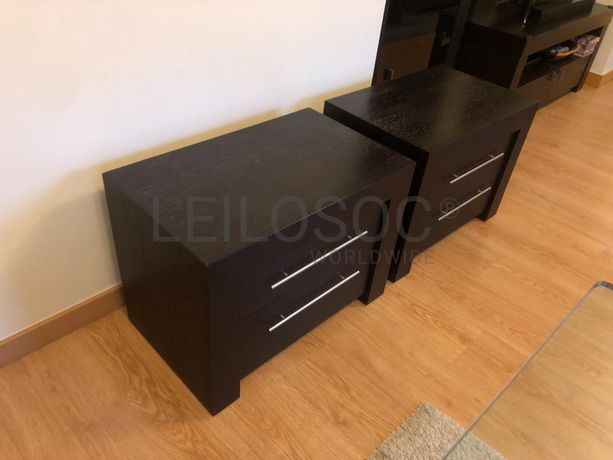 2 Mesas de cabeceira, em madeira, medidas 65x40x50cm (acessórios não incuídos). Nota: não acresce IVA.