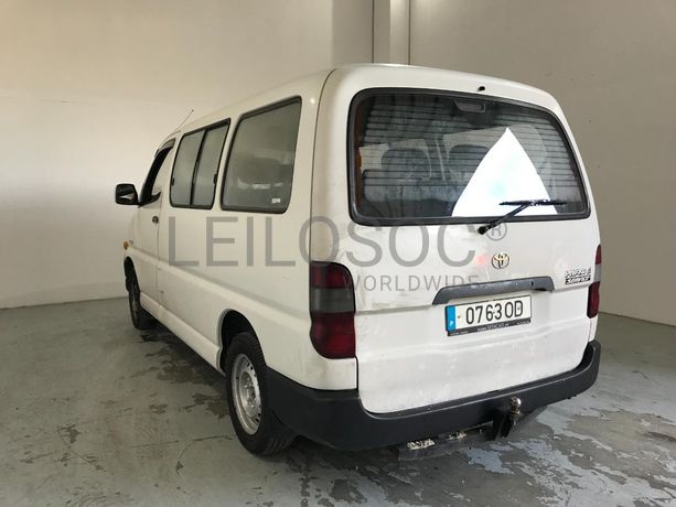 Veículo ligeiro de passageiros Toyota Hiace 2.4D, do ano de 1999, a diesel, com 564.660kms, 2446cc, 75cv, de 9 lugares, 5 portas, estofos em tecido, caixa manual, vidros elétricos, alguns riscos, matrícula 07-63-OD. NOTA: não acresce IVA.