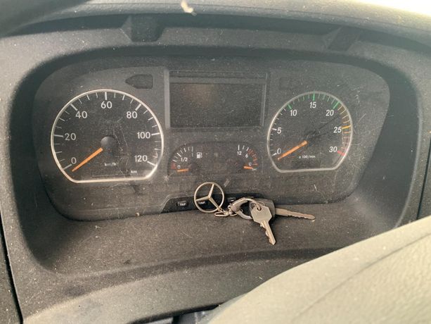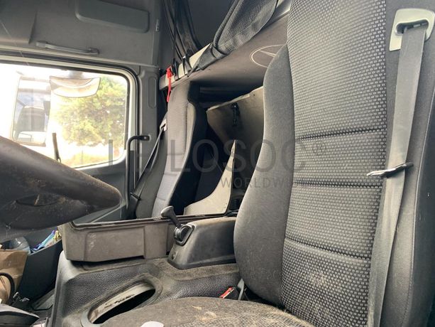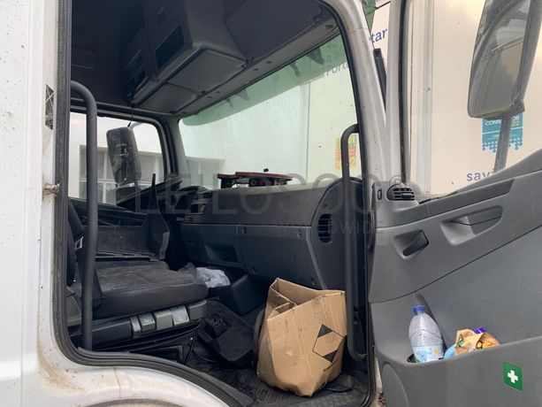 Veículo pesado de mercadorias da marca Mercedes-Benz Atego 822, do ano de 2011, a diesel, não se consegue visualizar os km, 2 lugares, 2 portas, estofos em tecido, caixa manual, vidros e retrovisores elétricos, volante multifunções, matrícula 60-LT-71. NOTA: Mau estado de conservação. Com peças soltas.
