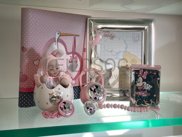 Mealheiro + Moldura de Bebé + Porta-chupetas + Caixa de Música + Álbum de Fotografias