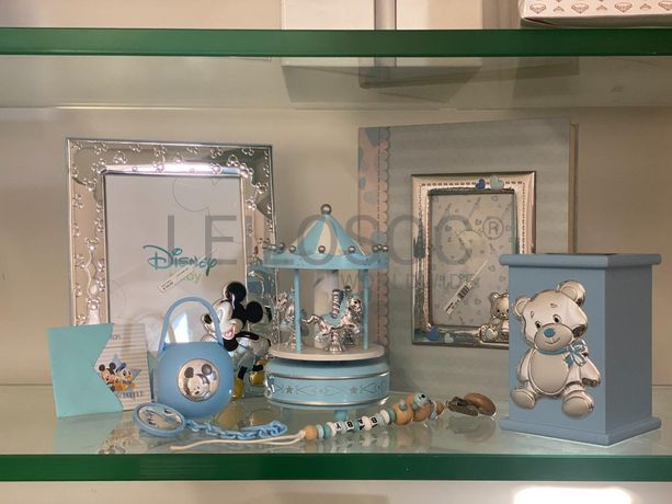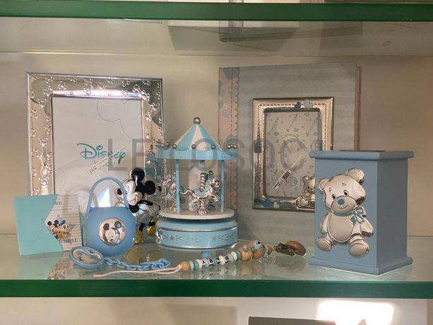Verba 35.86 - Mealheiro azul. + Verba 40.34 - Moldura de Bebé. + Verba 35.50 - 2 Porta-chupetas. + Verba 35.57 - Caixa de Música. + Verba 194.7 - Álbum de Fotografias