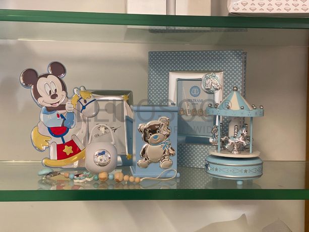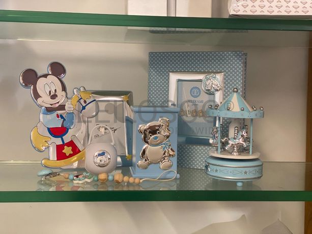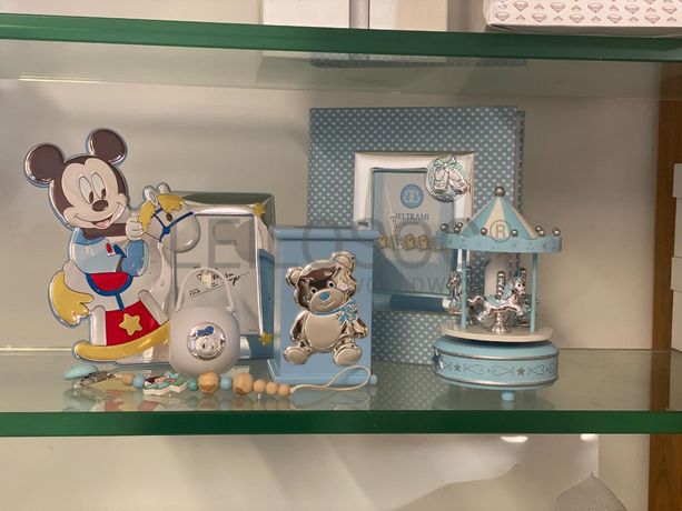 Verba 35.46 - Mealheiro azul. + Verba 40.37 - Moldura de Bebé. + Verba 35.53 - 2 Porta-chupetas. + Verba 35.60 - Caixa de Música. + Verba 194.10 - Álbum de Fotografias