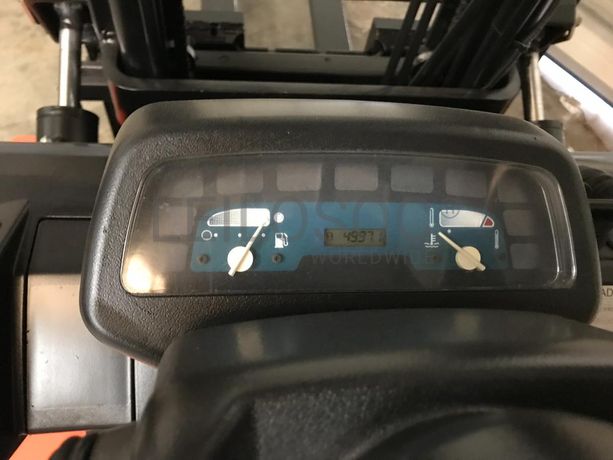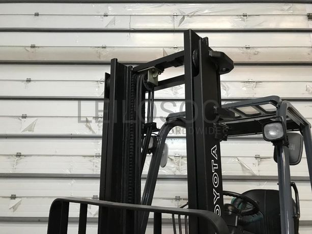 Empilhador Toyota 42-7FGF18, a gás, 1.800kgs, com 4.997horas, do ano de 2000, deslocamento lateral, torre dupla, elevação a 3.300mm, certificado de conformidade , nº de série 11935. NOTA: acresce IVA.