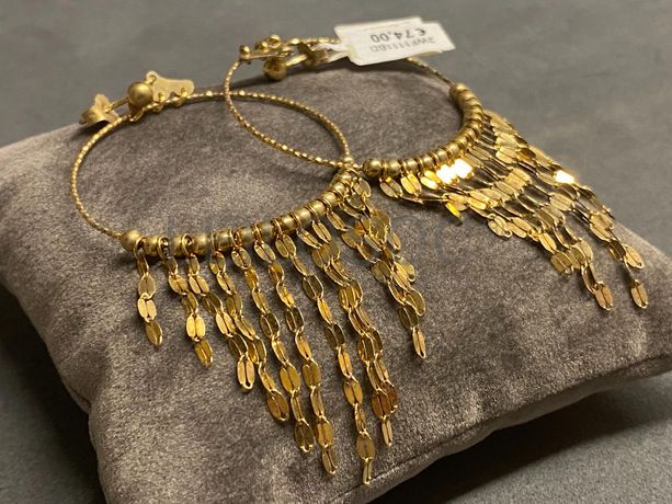 Par de brincos em prata, dourados.