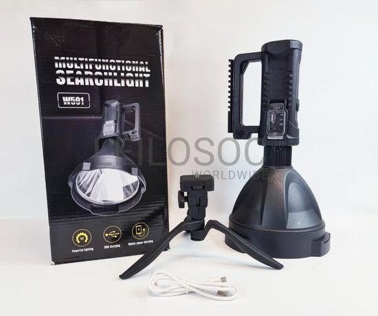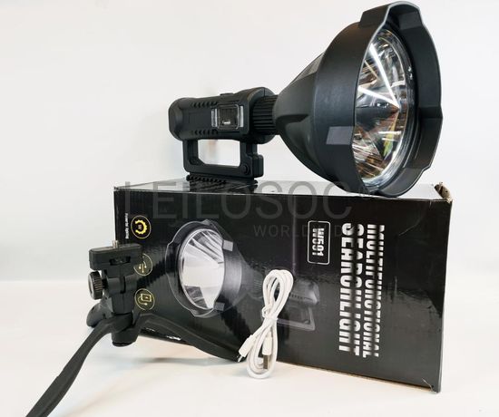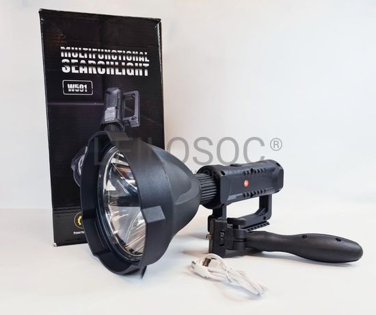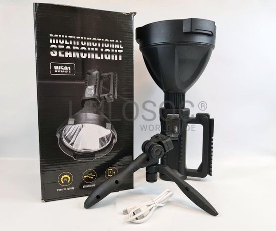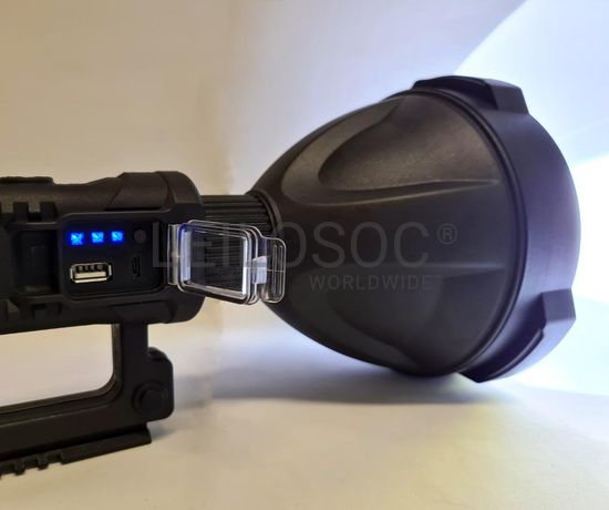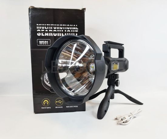 Mega lanterna/holofote portátil, com bateria recarregável, de 30W, autonomia 4-6 horas, peso 750g, super brilhante, com alcance de 500metros, carregamento por USB. Artigo novo. Nota: não acresce IVA.