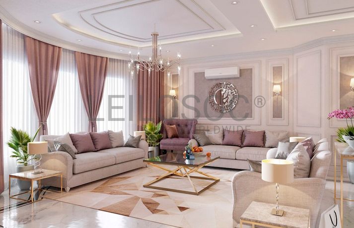 - Mesa de sala redonda, 4 cadeiras, louceiro de 3 portas, aparador 2 portas, sofá, móvel de apoio com espelho, 2 mesas.