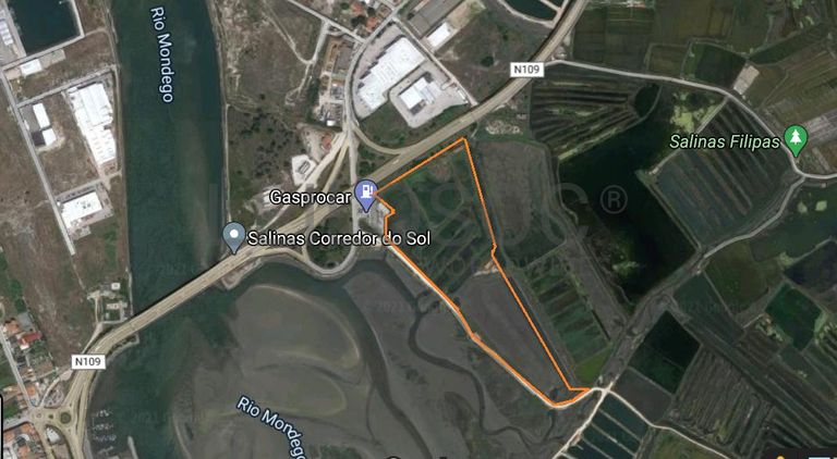 Terreno com Área Total de 112.500,00m2 · Marinha de sal e viveiro · Inclui benfeitoria de construção de habitação e 2 armazéns em madeira · Servido por caminho de terra batida, com vedação em todo o seu perímetro · Com infraestrutura para controlar entrada e saída de água · Próximo de serviços · A 5 minutos do centro da Figueira da Foz · A 1 minuto da N109.
